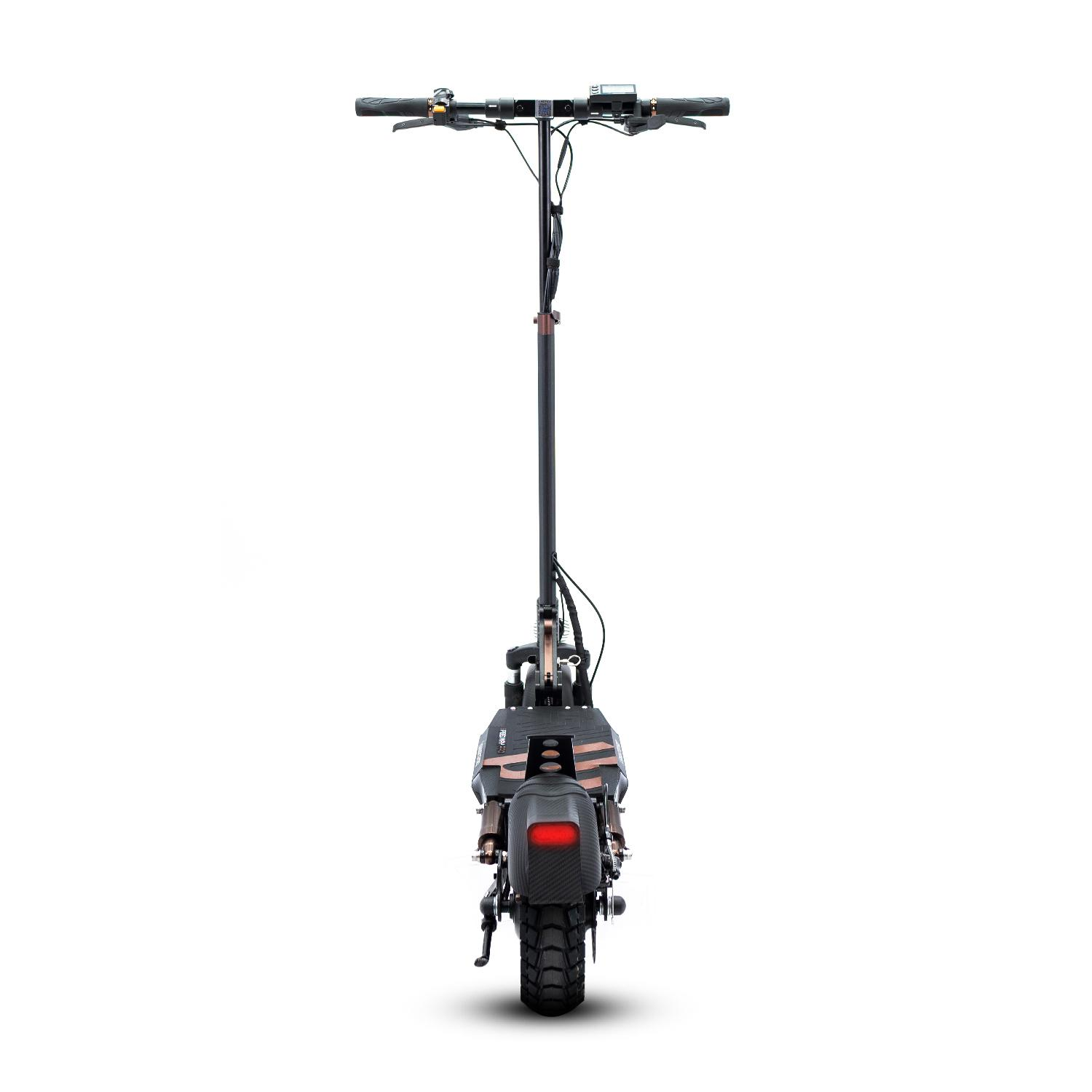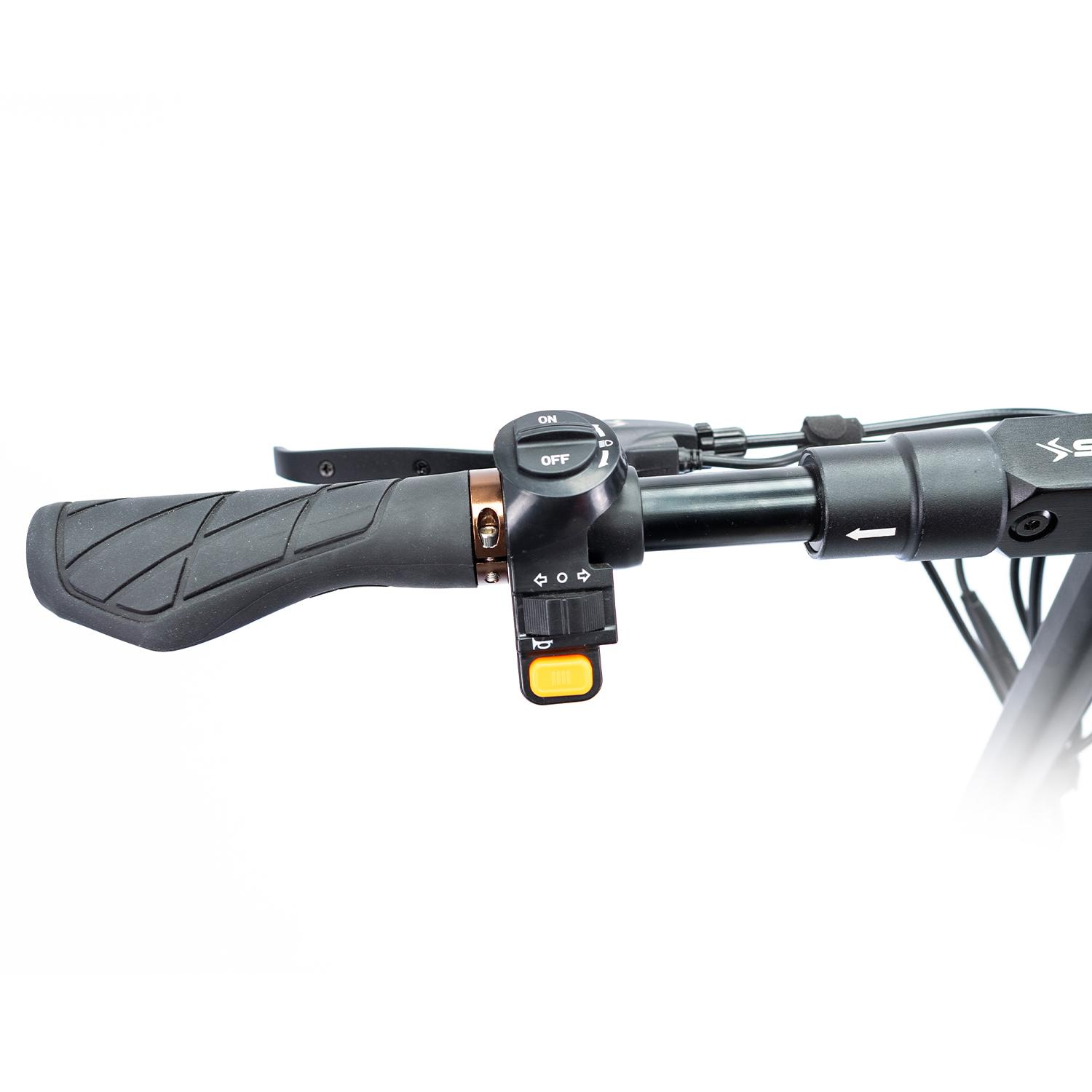 • Iluminación completa: foco frontal de alta potencia, intermitentes delanteros, LEDs ambientales en la base y luz de freno trasera.