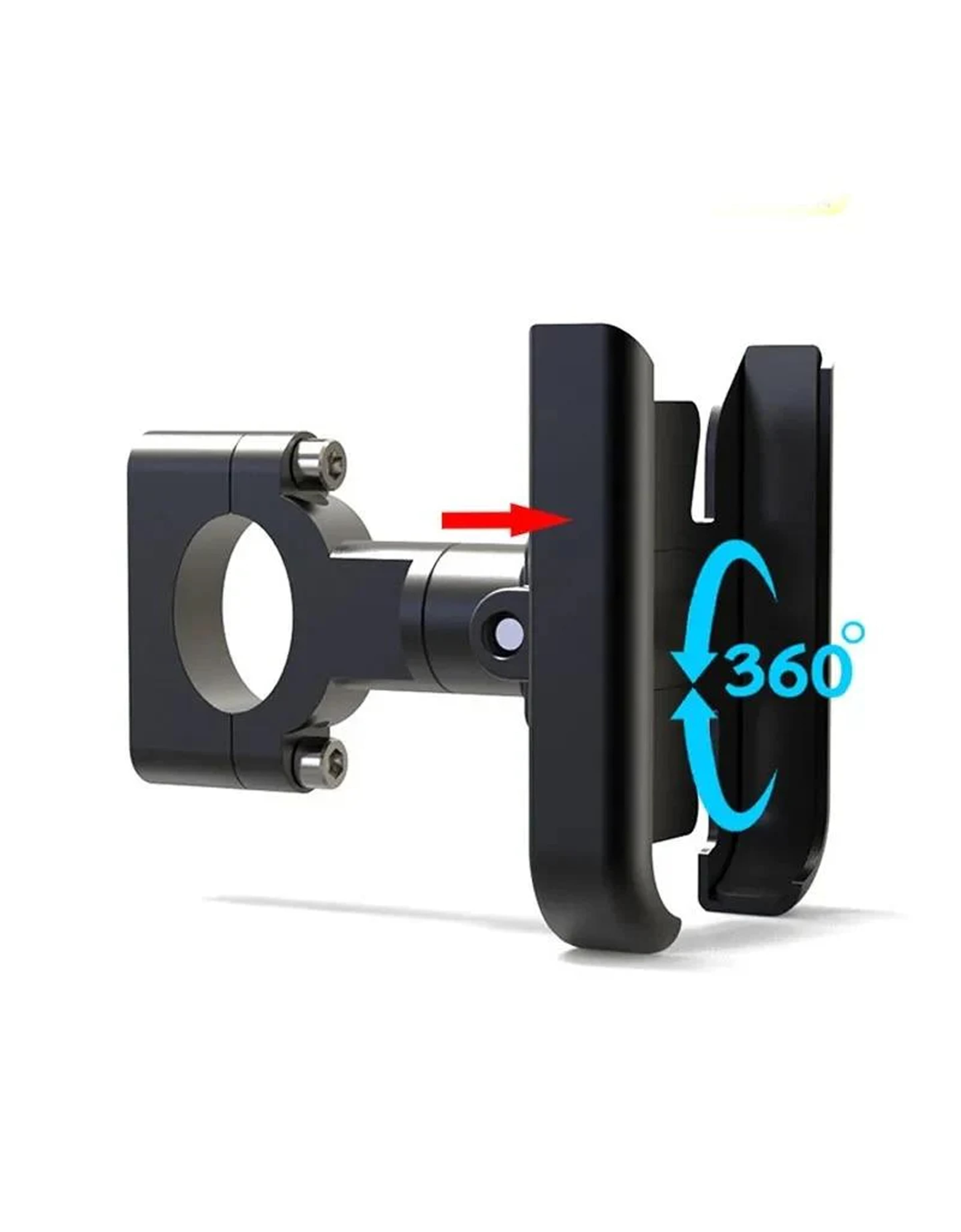 Soporte de aleación de aluminio con ajuste 360º mediante perilla metálica para una orientación perfecta en cualquier ángulo. Proporciona sujeción firme incluso en trayectos exigentes y protege el teléfono frente a arañazos. Compatible con móviles de 60–95 mm de ancho, cubriendo la mayoría de dispositivos actuales.